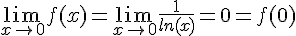 Pour montrer la continuité, je dois donc calculer la limite de f(x) en 0 quand x tend vers 0, or on sait que :