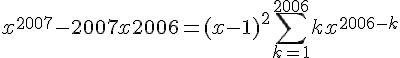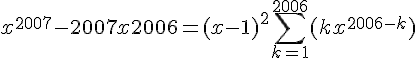 Si x = 1 on a donc 2006 termes égaux à 1 et donc 1 est une racine évidente de: on peux le factoriser par