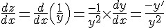 j'ai vu dans un corrigé que z'=-y'/y² mais je ne comprends pas comment on trouve ça.