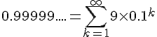 Donc apparemment 0.9999 = 1 est faux, mais le nombre qui séparerai 0.9999 et 1 équivaudrait à 10-infini ??