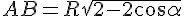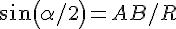 La longueur de la corde d'angle a et d' extrêmités A et B est AB = 2Rsin(a/2) (1)