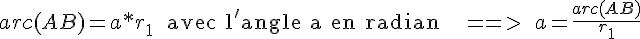 La longueur de l'arc de cercle d'angle a et d' extrêmités A et B est:(2) (si a en radians)