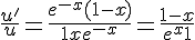 donc (ln(u))' = (en factorisant en bas par e-x)