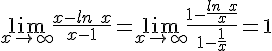 si c'est en +l'infini lim (x-lnx)/(x-1)=lim x/(x+1) - lnx/(x-1)=1 car lim x/(x+1)=1 et lim lnx/(x-1) est équivalent à lim lnx/x=0 en +inf