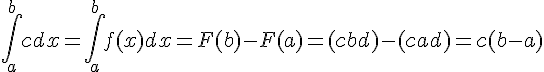 Pour une fonction constante : l'intégrale S{b;a} f(x)*dx = (b-a)*c = (b-a) * f(x)