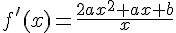 - il faut que je montre que f ' (x) = 2ax² + ax + b / x