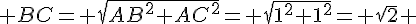 On considère un triangle ABC rectangle en A où AB=AC=1 ; le mileu de [BC] est D.