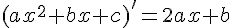 Pour f, soit tu développes et tu dérives tout simplement, soit tu utilises la formule.