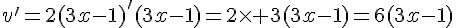 Juste pour info la dérivée de (3x-1)² n'est pasCe que tu peux faire c'est développer (3x-1)² --> 9x² -6x +1 et dériver cette expression[2(3x-1)(3x-1)]