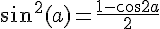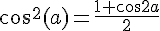 Idem pour le sin² 22,5°, je sais qu'on doit passer par cette formule mais je ne comprends pas après comment faire avec le cos 2 a entre parenthèse...