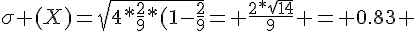 On lance les deux dés précédents, quatre fois de suite. On suppose les lancers indépendants et on note X le nombre de fois où l'évènement B se réalise au cours des quatre lancers. Déterminer la loi de probabilité de la variable aléatoire X. Préciser son espérance et son écart type.