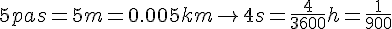 Je fais des pas de 1 mètre. Je fais 5 pas en 4 secondes. Quelle est ma vitesse en km/h ?