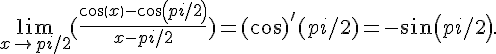 OR lim(x->pi/2) [cosx-cospi/2 / (x - pi/2)] = {cosx}' = -sinx