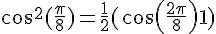 1. Donner les valeurs exactes de sin(PI/8) , sin ( PI/12) , sin ( PI- PI/8 - PI/12) , sin2a et cos 2a .