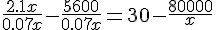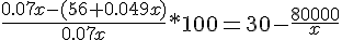 ([ 0,07x - (56+0.049x) ] / 0.07x ) * 100 = 30 - (80000/x)