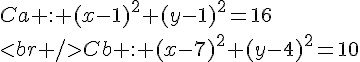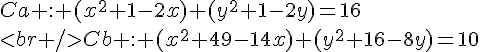 Exemple : soit Ca, le cercle de centre A(1;1) et de rayon 4 et Cb, le cercle de centre B(7;4) et de rayon racine de 10