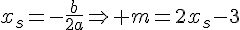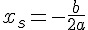 Les relations des coordonnées du sommet d'une parabole exprimées avec les coefficients sont :