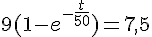 On étudie la fonction u définie sur l'intervalle [0;300] par u(t)= 9(1-e^-t/50)