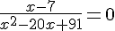 donne par ta méthode (multiplier les deux membres par le dénominateur) x-7 = 0 donc x=7. Mais 7 ne fait pas partie du domaine de définition de al fraction, car 7²-20x7+91 = 0.