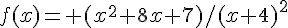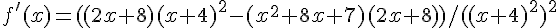 J'ai un devoir maison pour la rentrée et j'ai une question qui me bloque : je dois vérifier que la dérivée de f(x)= (x²+8x+7)/(x+4)² est bien