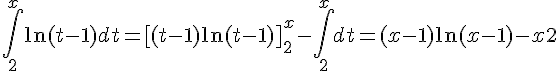 int de 1àX ln (T-1) dt=[t(ln(t-1)]-.... = x(ln(x-1)-ln0