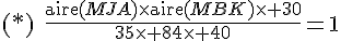 Voilà j'aurais besoin dune petite aide car je suis vraiment bloqué sur un exercice. Voici le sujet: Soit ABC un triangle et M un point intérieur ce triangle. La droite (AM) coupe (BC) en I, la droite BM coupe AC en J et la droite (CM) coupe (AB) en K. Les aires des triangles MAK, MBI, MCI et MCJ sont égales respectivement à 84, 40, 30, 35. Déterminer l'aire du triangle ABC.