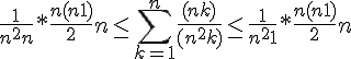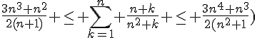 Donc d'après moi on part de l'encadrement que j'ai démontré et on encadre la suite en passant par les sommes. Sauf que d'après mes calculs de part et d'autre de l'encadrement on converge vers zéro ! Alors qu'il semblerait que la suite converge vers 1.5. Je ne comprends pas trop...