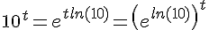 On a bien 10t = (eln10)t. Par contre vous confondez (eln10)t avec e(ln10)t. Ces deux quantités sont différentes.