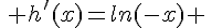 x<0, tu as un soucis avec -x mais -x >0 !! donc tu peux mettre une autre variable si tu veux, tu pose y= -x, donc y>0 et tu as une nouvelle fois h'(y) = ln(y) .