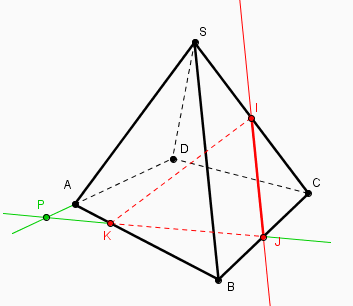 SABCD est une pyramide. I et J sont les milieux respectifs de [CS] et [CB]. K est le point de [AB] tel que 4AK=AB