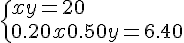 Dans le porte-monnaie de Thierry,il n'y a que des pièces de 20 centimes et de 50 centimes d'euros. Au total il y a 20 pièces, ce qui représente la somme de 6,40 euros. Déterminer le nombre de pièces de chaque sorte qu'il posséde dans son porte-monnaie. (On pourra choisir x pour représenter le nombre de pièces de 20 centimes).