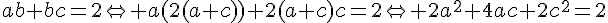 Je ne vois pas d'où tu sors ta troisième égalité qui est... fausse (essaye par exemple pour a=1, b=2 et c=3)par