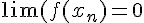 Preuve immédiate (si tu n'as pas déjà le théorème) en combinant la définition de la limite de la suite avec la définition de la continuité : pour n suffisamment, grand, xn est suffisamment proche de 2 pour que f(xn) soit aussi proche de 0 que l'on veut.
