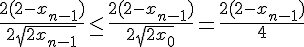 Pour montrer que (xn) est majorée par 2 vous pouvez le faire très simplement par récurrence. En supposant que xn<2 c'est immédiat que xn+1<2 aussi.