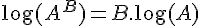 Si on a A = exp(B) alors log(A) = M B. M étant une constante dépendant du type de logarithme (népérien, décimal etc.).