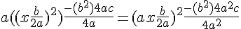mais j'ai un doute quant à sa forme cannonique: est-ce f(x)=a(x+b/2a)²+(4ac-b²)/4a? Car en calculant avec les deux formules pour le même nombre x, je ne trouve pas le même résultat. Est-ce que ma formule est fausse?