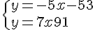Δ : y=-5x-53