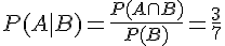Donc, je passe au calcul pur, et je nomme A="Il y a 2 garçons parmis les trois enfants", et B="Il y a au moins une fille parmis les trois enfants".