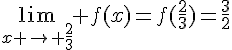 maintenant f est bien continue à gauche et à droite de (2/3), par conséquent f est continue en x0=(3/2) .