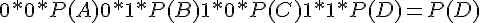 , pour A = " J1 perd, J2 perd ", B = " J1 perd, J2 gagne ", C = " J1 gagne, J2 perd " et D = " J1 gagne et J2 gagne ".