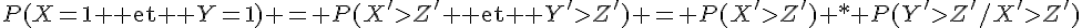 On a les deux variables aléatoires X et Y, X vaut 1 si J1 gagne, 0 sinon; Y vaut 1 si J2 gagne, 0 sinon.
