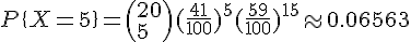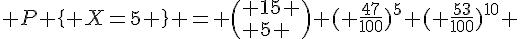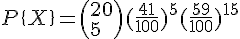 - On prend 20 personnes au hasard de nationalité suisse (ou française x) ), et on calcule la probabilité qu'exactement 7 d'entre elles sont du groupe A.