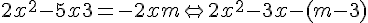 Je penche toujours sur la 1ère question sans y trouver de réponse, j'ai pour le moment " compris " qu'il fallait résoudre 2x²-5x+3=-2x+m mais je n'y arrive pas ( Ce que je trouve ne me paraît pas cohérent : 2x² - 3x - (m-3)=0 avec Delta = 33-8m )