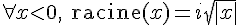 On peut étendre de façon raisonnable le logarithme aux nombres négatifs, seulement la fonction ne serra plus à valeurs réelles. Un peu comme on peut étendre la fonction racine carrée aux nombres réels négatifs, en posant. Ici c'est "encore plus compliqué", car il existe plusieurs façons raisonnables de l'étendre :