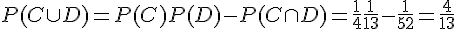3)Calculer la probabilité de l'évènement CuD ( C union D) de deux manières différentes.
