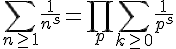 oùet où le produit s'étend sur l'ensemble des nombres premiers.