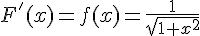 Même si tu ne l'as pas encore apprise à l'école, la solution se trouve dans n'importe quel formulaire de maths : la fonction argsh(x) (argument sinus hyperbolique) est une primitive de ta fonction f(x).