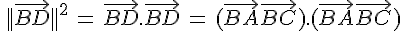 llBDll=RACINE[llBAll²+llBCll²+2xllBAllxllBCl lxcos(θ)] et θ étant l'angle entre BA et BC.(je rappelle que je n'ai pas pu mettre les flèches)