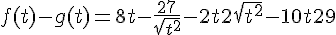 3) prouver que f(t)-g(t) = 8t-27/racine carrée de t²-2t+ racine carrée de 2+t²-10t+29 et deduire son signe et la position relative des courbes des fonctions .
