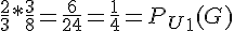 Un jouer choisit une urne au hasard, puis prélèves une boule au hasard de cette urne. Il n'est gagnant que s'il tire une boule bleue. On désigne par G l'événement <<Le joueur gagne>> et par(1